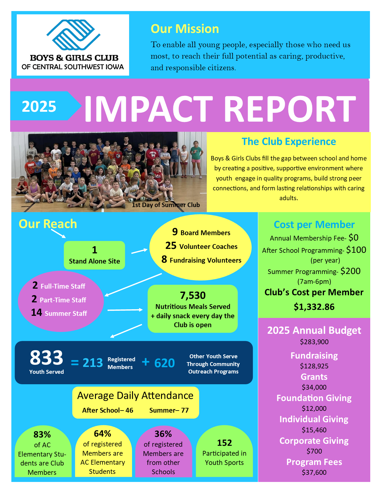 The Boys & Girls Club of Central Southwest Iowa follows the ACGC School District calendar. We remain open during all ACGC early dismissal days and are closed on all ACGC no-school days.